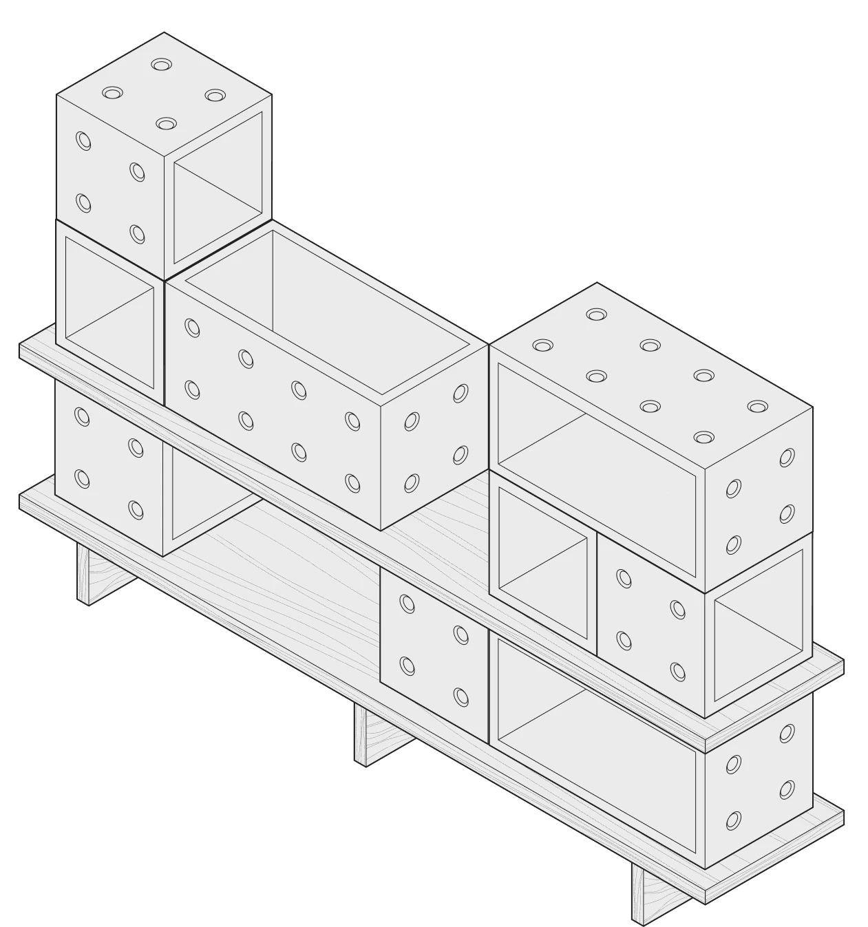 With the addition of a fifth face to module 745, new opportunities have opened up. Initially conceived for an office design project blending brutalism and plant abundance, this module has rapidly become a fundamental element of our system, offering a versatile solution to meet each of your layout requirements.