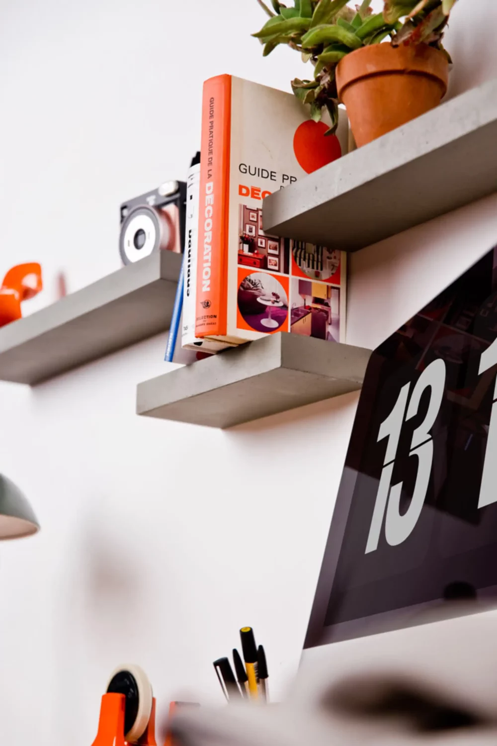 Available in 4 sizes (30, 60, 90 and 120 cm), you can combine these concrete shelves to structure your wall decoration.